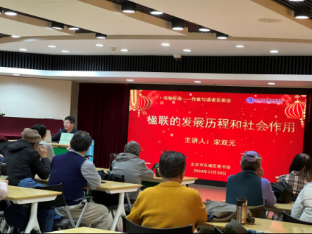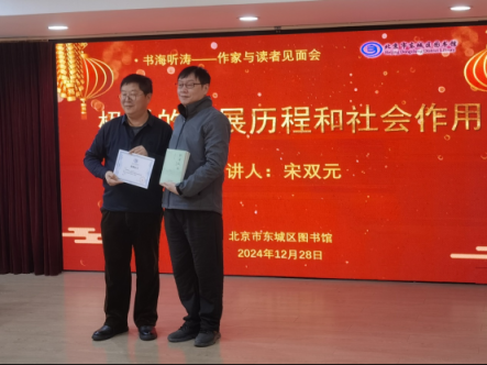 近日,“书海听涛——作家宋双元与读者见面会”在北京市东城区图书馆顺利举办。东城区图书馆党支部书记兼馆长左堃,西城区文联副主席、著名作家李金龙以及数十名诗词、楹联爱好者参加了见面会。